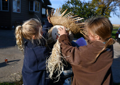 The Clay County PALS and mentors met at the Christensen Hacienda near Royal for a fall party, teamwork scarecrow buiding project and chunkin’ pupmkins!