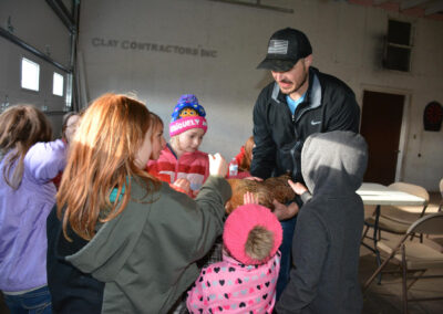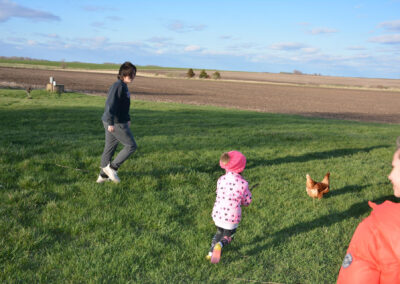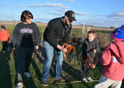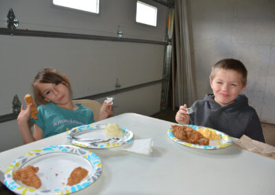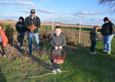 The Clay County PALS were invited to our PALS Board of Directors President Craig and Lindsey Neiderheiser’s farm south of Spencer, for an evening of fun meeting their chickens. The kids learned about the Neiderheiser’s flock of 22 chickens, gathered eggs and even held some of the baby exotic chickens. Guess what we had for dinner? Your guessed it: Kentucky Fried Chicken. A good time was had by all!